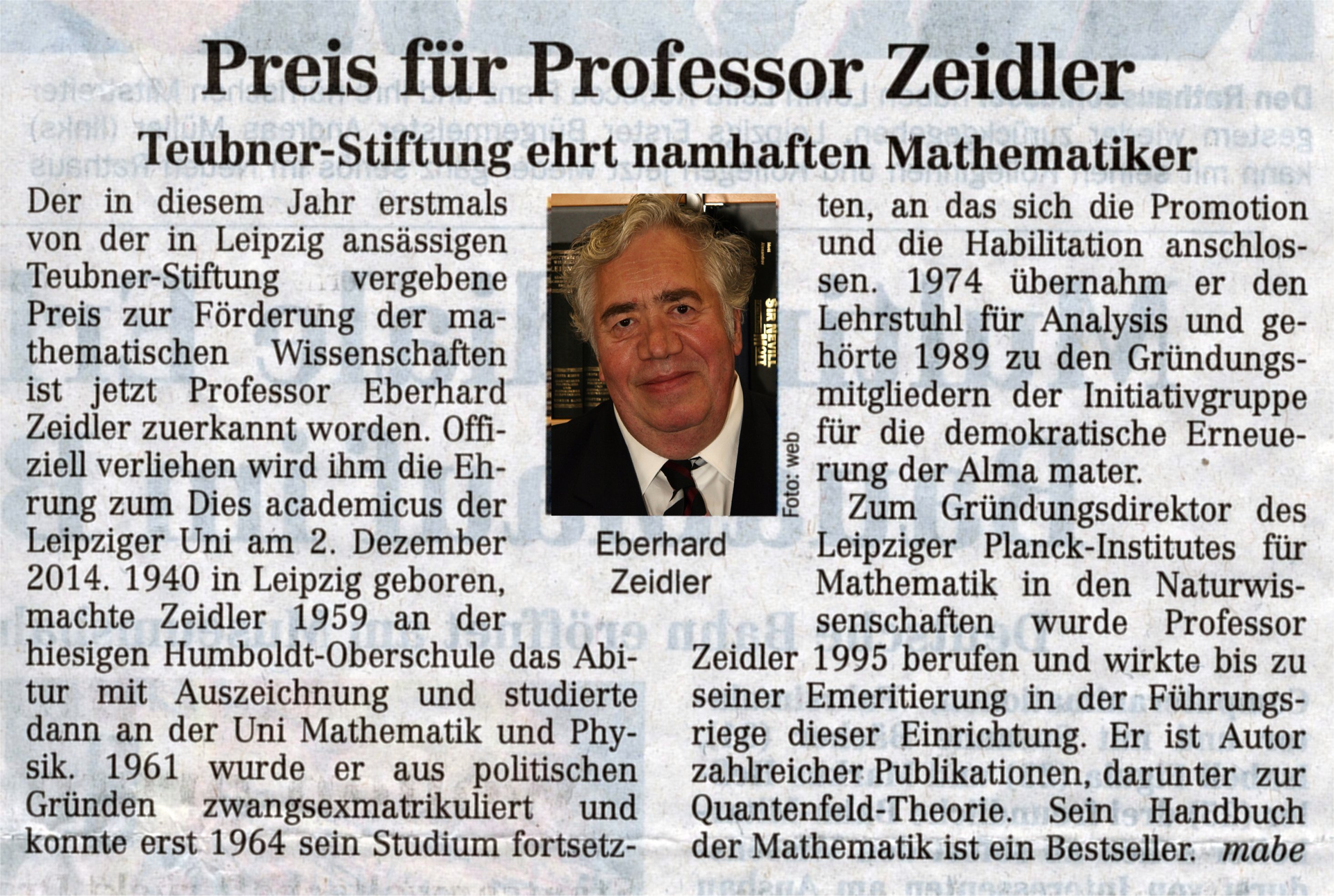 zur Förderung der Mathematischen Wissenschaften an Eberhard Zeidler …